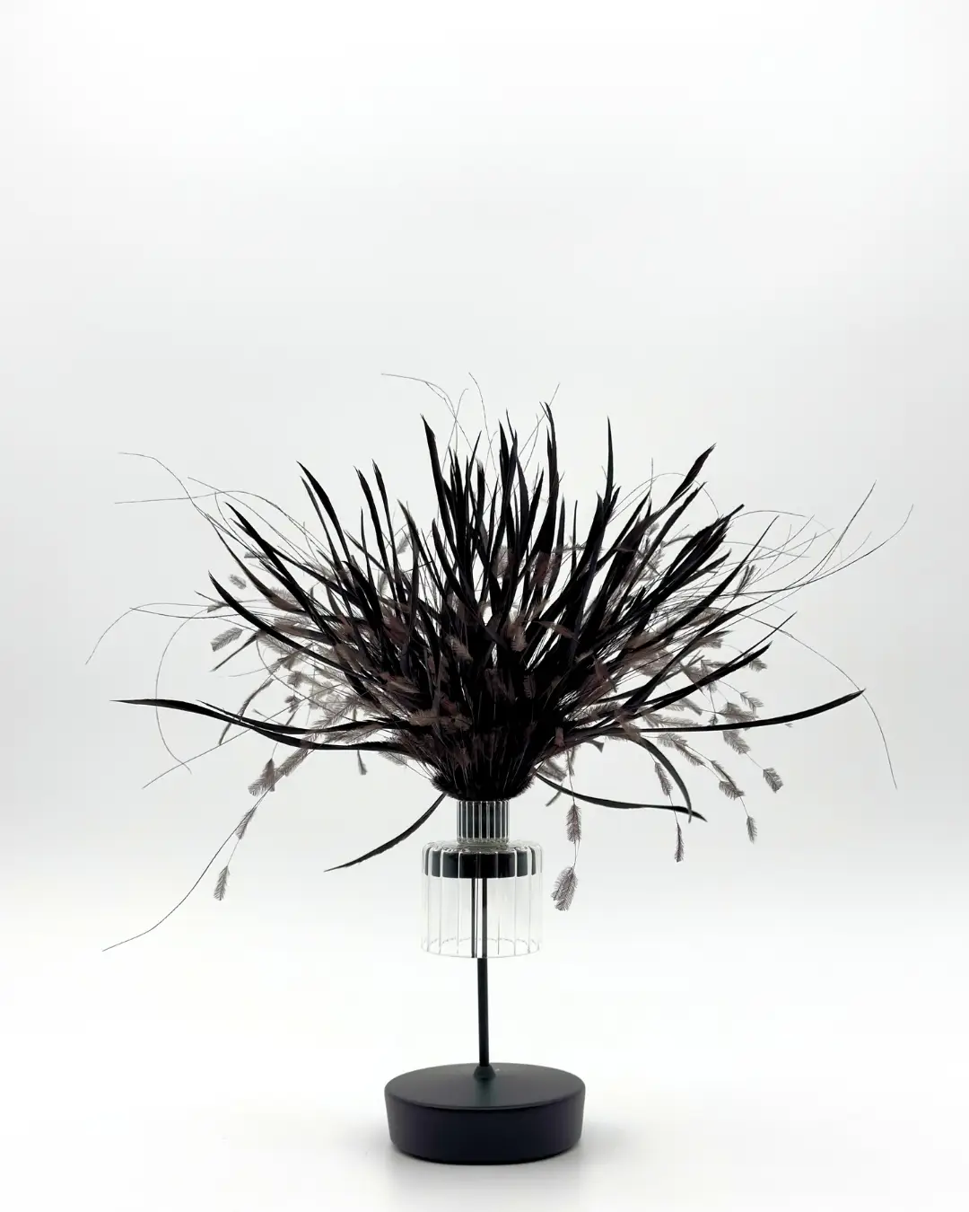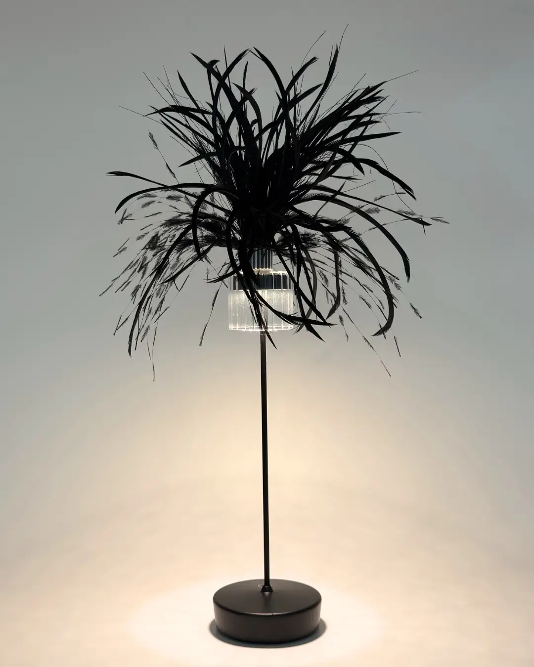 Mélange de plumes précieuses et de verre, nos photophores Dee Dee offrent à votre lampe nomade une dimension