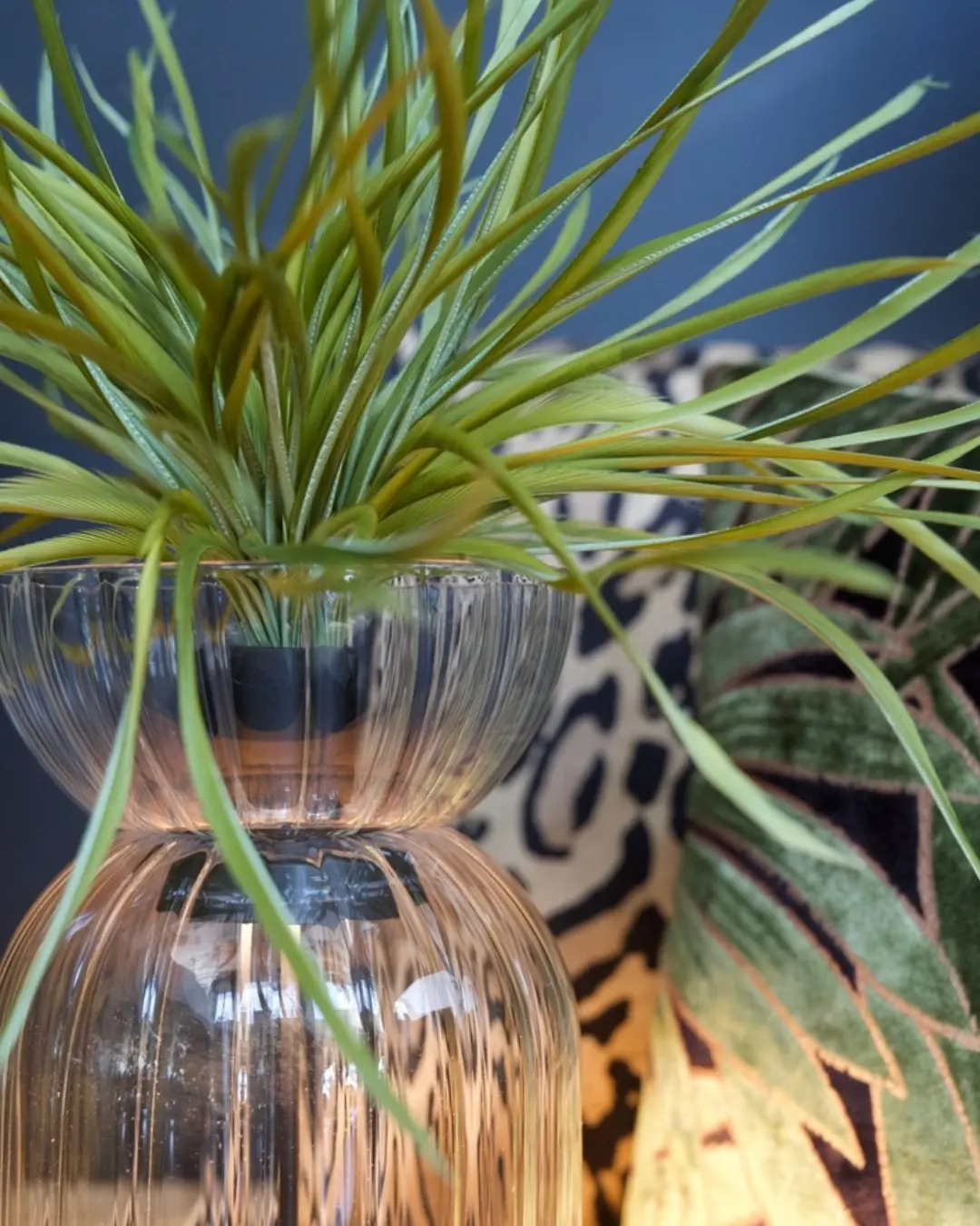 Les Divas … De plumes et de verre. Le photophore Ella en verre borosilicate cannelé est conçu pour habiller le modèle de lampe Swap Mini de chez Zafferano, leader du marché de la lampe nomade de qualité. Le modèle Ella, pourvu d’un aimant, est livré avec un bijou de plumes magnétique. Ainsi, vous pourrez, si vous le souhaitez, acquérir d’autres bijoux magnétiques afin de modifier le look de votre lampe au gré de vos envies. Mélange de plumes précieuses et de verre, le photophore Ella offre à votre lampe nomade une dimension décorative, poétique et aérienne inédite, le tout décliné dans une large gamme de formes et de couleurs. Sur une table basse ou de repas, dans une chambre, une salle de bain ou encore un guéridon, votre lampe saura facilement trouver sa place dans la maison. Lampe Swap Mini vendue séparément. Dimensions : environ H 40cm / DIA 35cm